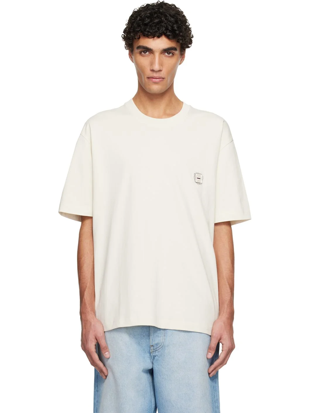 Cotton jersey T-shirt. · Rib-knit crewneck · Logo patch and embroidered detailing at chest · Tennis-tail hem · Dropped shoulders · Logo embroidered at back Supplier color: Beige Body: 100% cotton. Trim: 97% cotton, 3% polyurethane. Made in South Korea 252221M213002