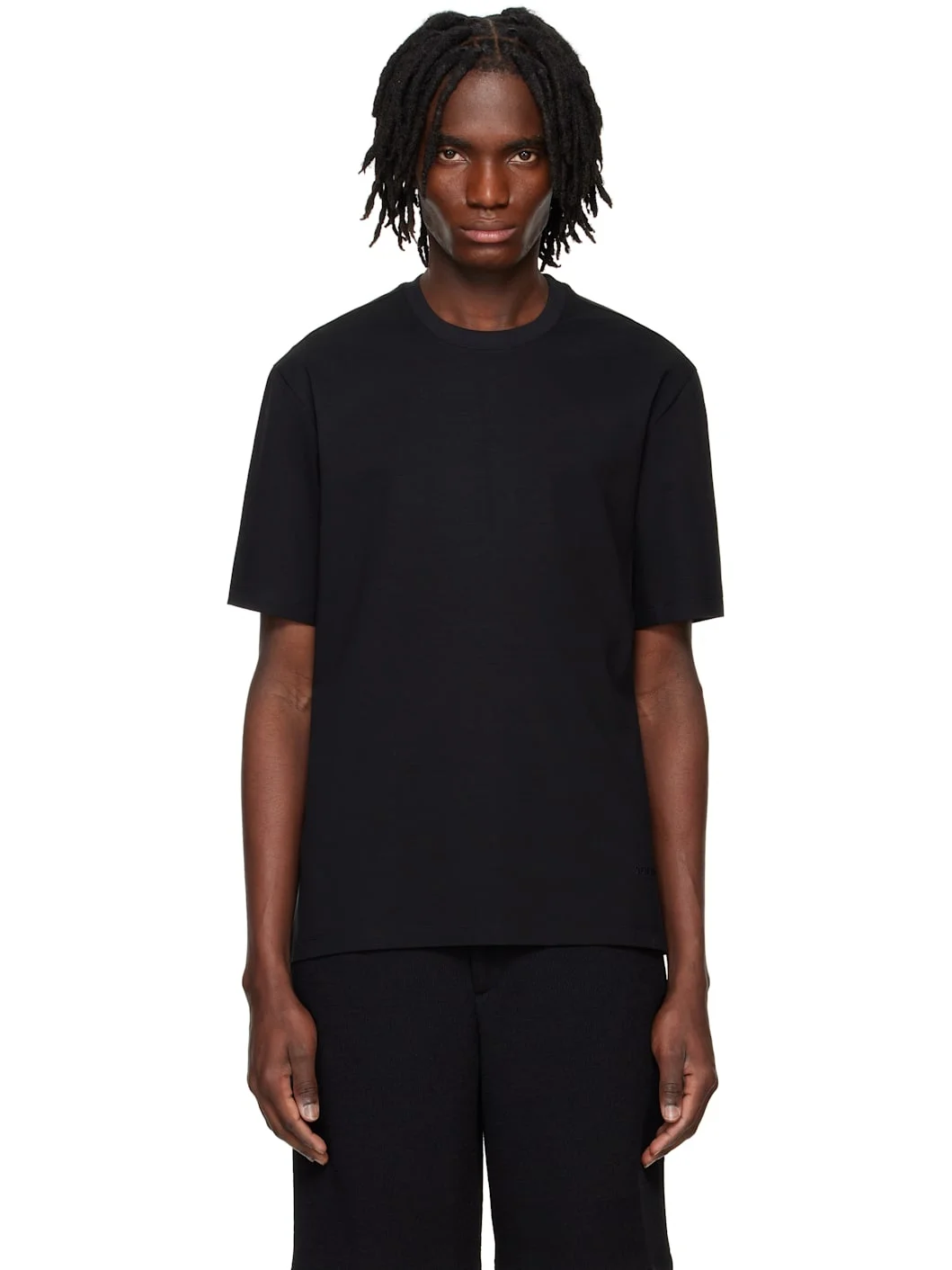 Stretch cotton-blend jersey T-shirt. · Rib-knit crewneck · Logo embroidered at front hem · Vented side seams Supplier color: Black 81% cotton, 14% lyocell, 5% spandex. Made in South Korea 251221M213009