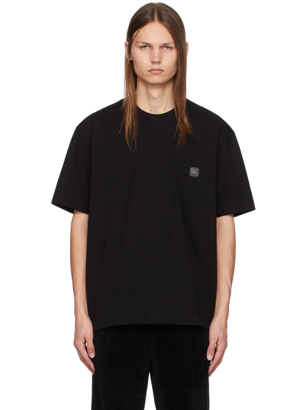 Cotton jersey T-shirt. · Rib knit crewneck · Logo patch at chest · Vent at side seams · Dropped shoulders · Graphic and text bonded and printed at back Supplier color: Black Body: 100% cotton. Trim: 76% cotton, 20% polyester, 4% polyurethane. Made in South Korea 242221M213010