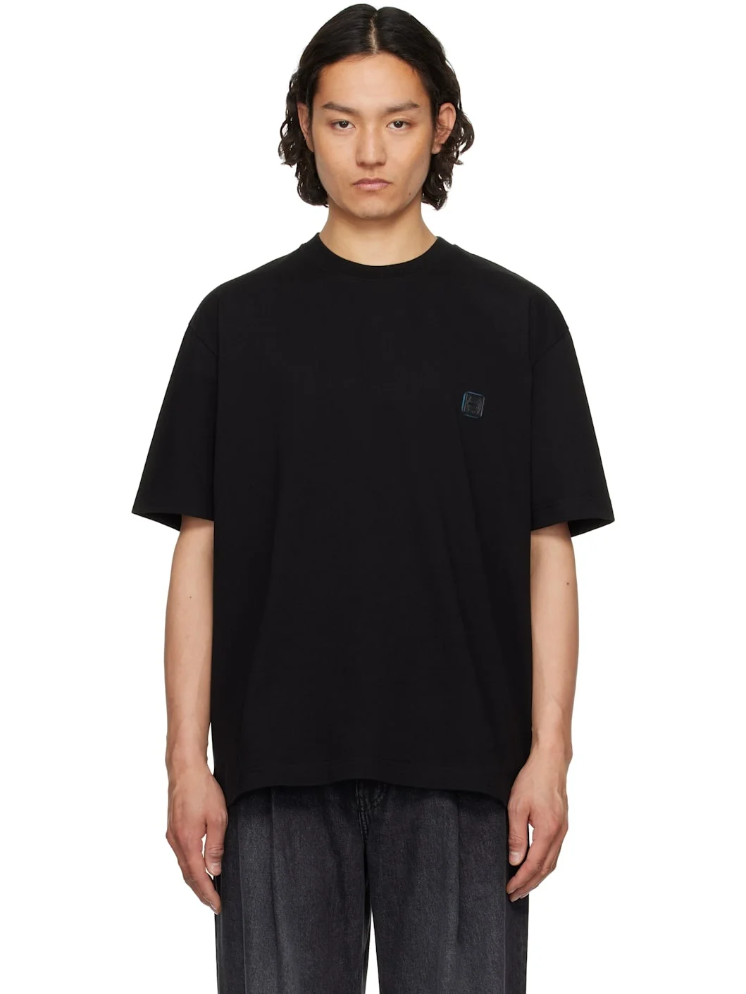 Cotton jersey T-shirt. · Rib-knit crewneck · Rubberized logo patch at chest · Vent at side seams · Dropped shoulders · Logo graphic and text printed at back Supplier color: Black 100% cotton. Made in South Korea 251221M213001