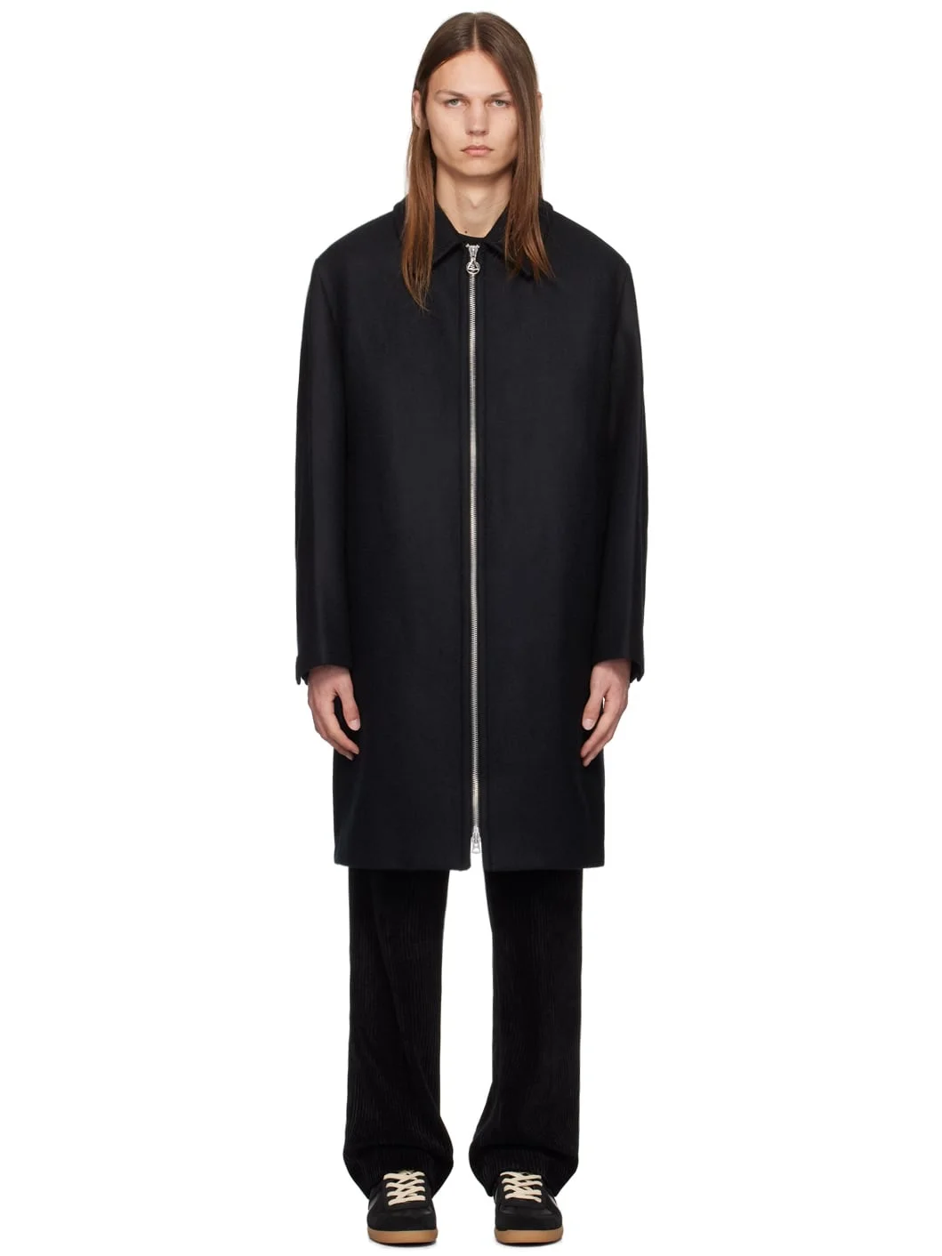 Wool-blend melton coat. · Spread collar · Two-way zip closure · Welt pockets · Dropped shoulders · Single button at cuffs · Full polyester- and viscose-blend satin lining Supplier color: Black Body: 97% wool, 3% nylon. Lining: 50% polyester, 50% viscose. Made in South Korea 242221M176002