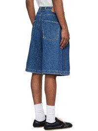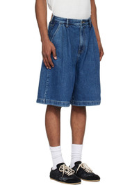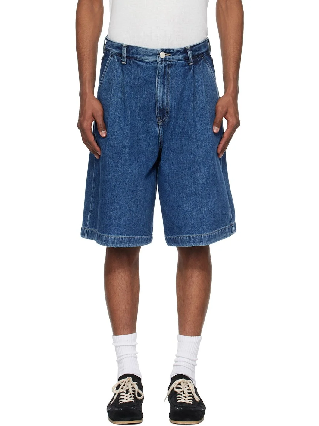 Non-stretch denim shorts. Fading throughout. · Belt loops · Pleats at waistband · Four-pocket styling · Zip fly · Leather logo patch at back waistband · Contrast stitching in tan Supplier color: Blue 100% cotton. Made in South Korea 251221M193007