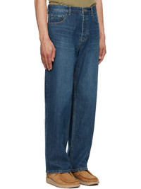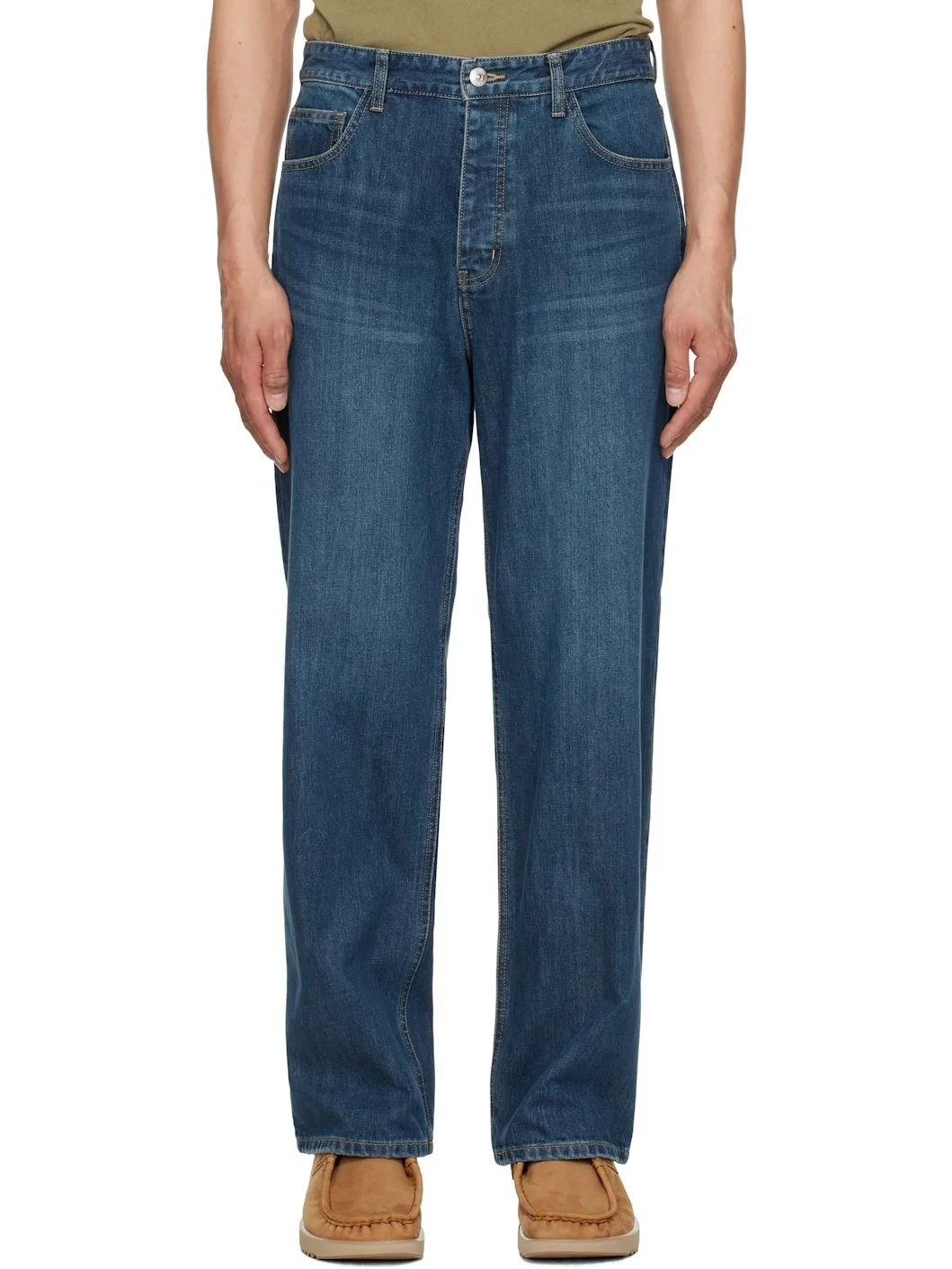 Wide-leg non-stretch denim jeans. Fading and whiskering throughout. · Belt loops · Five-pocket styling · Button fly · Suede logo patch at back waistband Supplier color: Blue 100% cotton. Made in South Korea 251221M186004