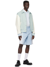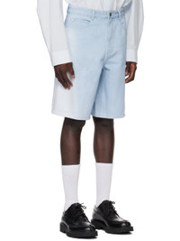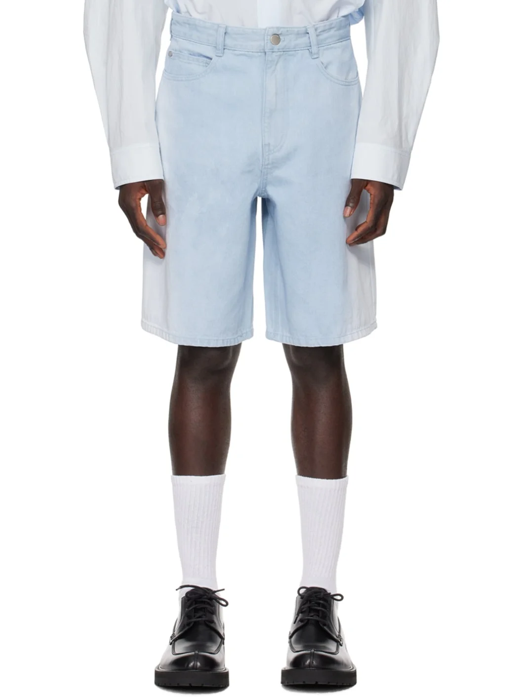 Non-stretch denim shorts. Washed effect throughout. · Belt loops · Five-pocket styling · Zip-fly · Logo patch at back waistband · Darts at back Supplier color: Blue 100% cotton. Made in South Korea 241221M193001