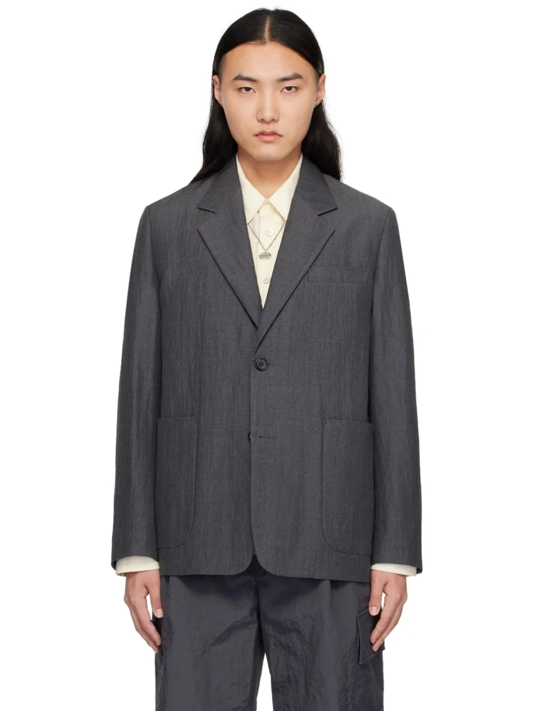 Crinkled wool-blend twill blazer. · Notched lapel · Two-button closure · Welt pocket and patch pockets · Three-button surgeon's cuffs · Central vent at back hem · Welt pockets at interior · Full satin lining Supplier color: Grey Body: 85% wool, 15% nylon. Lining: 50% polyester, 50% rayon. Made in South Korea 241221M195000
