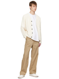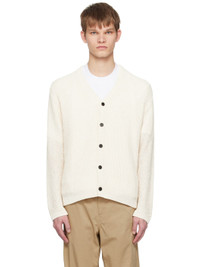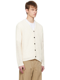 Open knit cotton cardigan. · Rib knit Y-neck, hem, and cuffs · Button closure Supplier color: Ivory 100% cotton. Made in South Korea 231221M200000