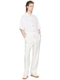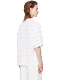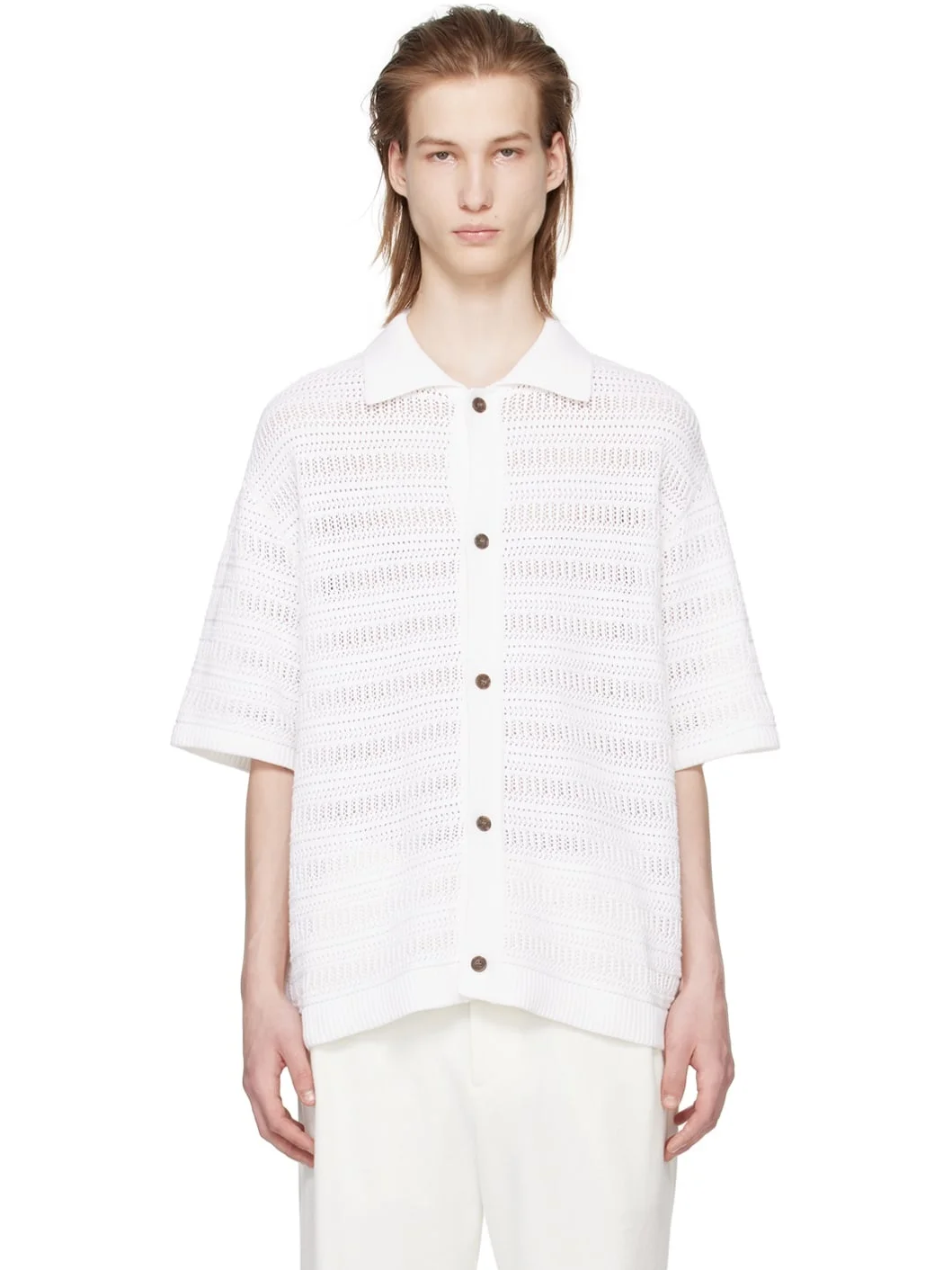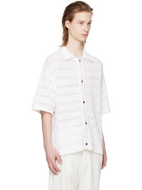 Knit cotton- and nylon-blend cardigan. Stripes and open knit detailing throughout. · Rib knit spread collar, hem, and cuffs · Button closure Supplier color: White 70% cotton, 30% nylon. Made in South Korea 241221M200000