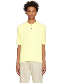 Rib knit cotton-blend polo. · Spread collar · Two-button placket Supplier color: Yellow 75% cotton, 25% nylon. Made in South Korea 231221M212002