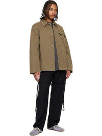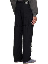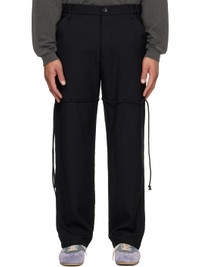 Wool-blend gabardine trousers. · Straight-leg · Belt loops · Four-pocket styling · Button fly · Loops and detachable drawstring at legs · Leather logo patch at back waistband Supplier color: Black Body: 50% polyester, 50% wool. Pocket lining: 100% cotton. Made in Australia 252699M191009