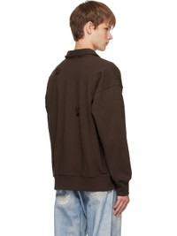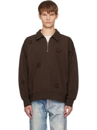 French terry sweatshirt. · Floral appliques throughout · Spread collar · Half-zip closure · Rib-knit hem and cuffs · Dropped shoulders Supplier color: Brown Body: 100% cotton. Trim: 95% cotton, 5% spandex. Made in India 252699M212000