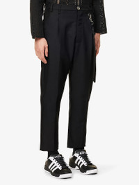 PRODUCT DETAILS - Song For The Mute wool-blend trousers - 50% cupro, 50% wool - Exposed button and concealed button-fly fastening at front - Regular fit, high rise, straight leg, belt loops, two slip pockets at front, pressed pleats at front, silver-toned hardware, chain belt with cord at waist, darts at back, two welt pockets at back - Specialist dry clean - Size UK 32: rise 15in / 28cm, inside leg 24in / 61.5cm, leg opening 15in / 36cm - Model is 6ft 1in/1.85m and wears a size UK 32 - Midweight, non-stretch