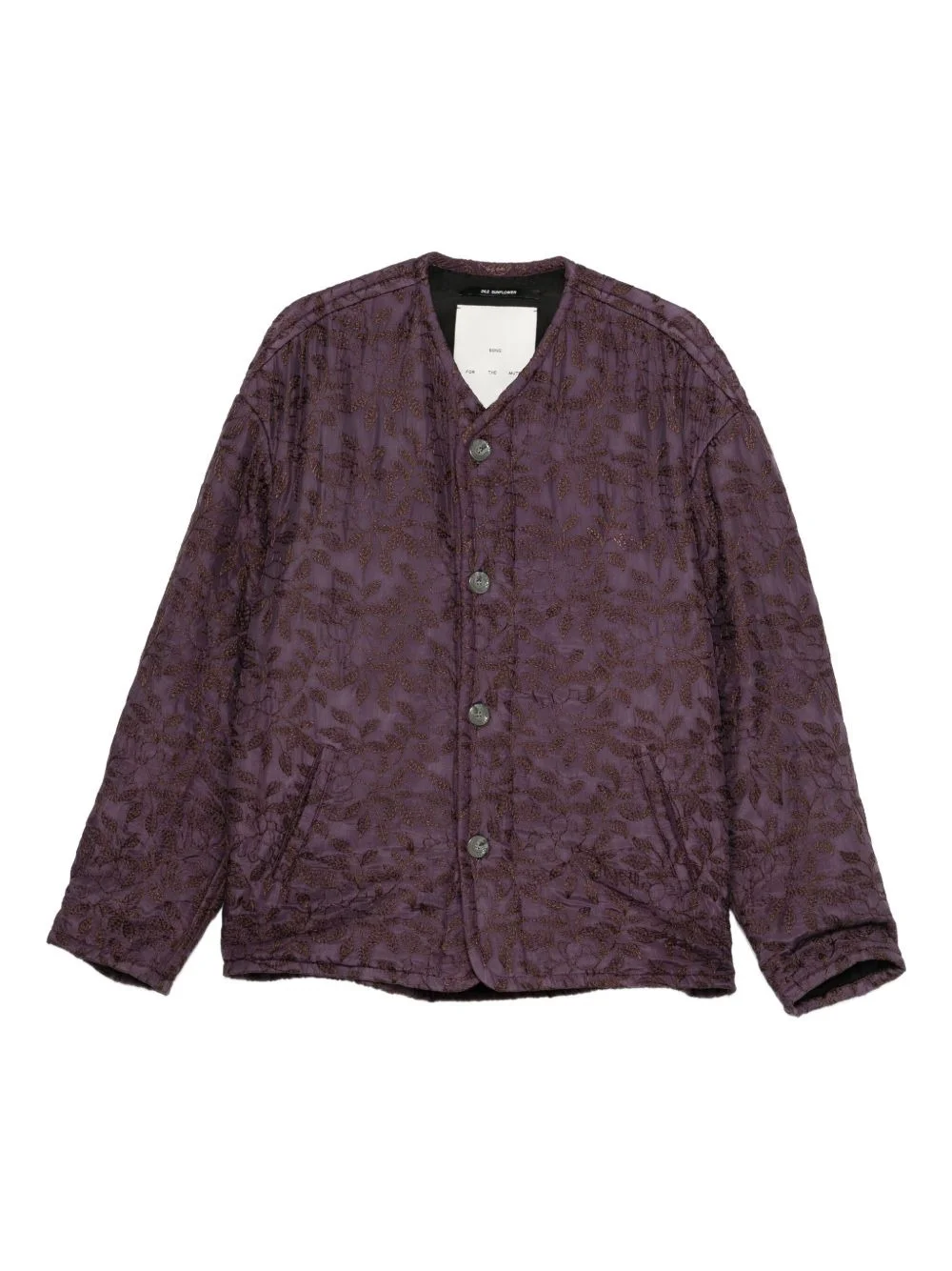 embroidered jacket Highlights - Purple - Floral embroidery - Front button fastening - Round neck - Long sleeves - Straight hem Imported Composition Outer: Silk 100% Lining: Cupro 100% Washing instructions Read Manufacturer Guidelines