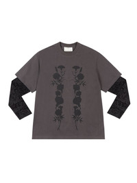 foliage-print double-layered "Black" T-shirt Highlights - Anthracite grey - Double layer - Graphic print to the front - Round neck - Long sleeves - Straight hem Imported Composition Cotton 100%