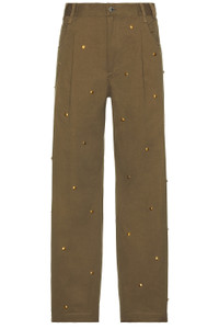 Details - Self: 100% cotton - Pocketing: 100% cupro - Made in India - Dry clean - Zip fly with button closure - 5-pocket styling - Structured twill fabric with gold-tone beading throughout - Item not sold as a set - Our Style No. SFMU-MJ1 - Manufacturer Style No. 251_MPT095B_CNVSTPE