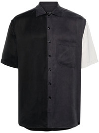 two-tone short-sleeve shirt Highlights - Charcoal grey/light grey - Coated finish - Seam detailing - Two-tone design - Spread collar - Front button fastening - Short sleeves - Chest patch pocket - Curved hem Imported Composition Cupro 100% SIZE & FIT Model measurements Height 6 ft 2 in(1.87 m) Bust/Chest 37.79 in(96 cm) Hips 37.79 in(96 cm) Waist 30.31 in(77 cm) FittingInformation Designed to be unstructured, offering a loose fit throughout Made from a midweight non-stretch fabric This piece fits true to size – take your usual size
