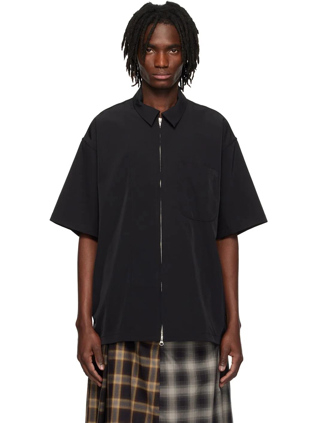 Water-resistant stretch polyester twill shirt. · Spread collar · Two-way zip closure · Patch pocket · Vented side seams · Dropped shoulders · Logo patch at back hem Supplier color: Black 94% polyester, 6% elastane. Made in Australia 251699M192002