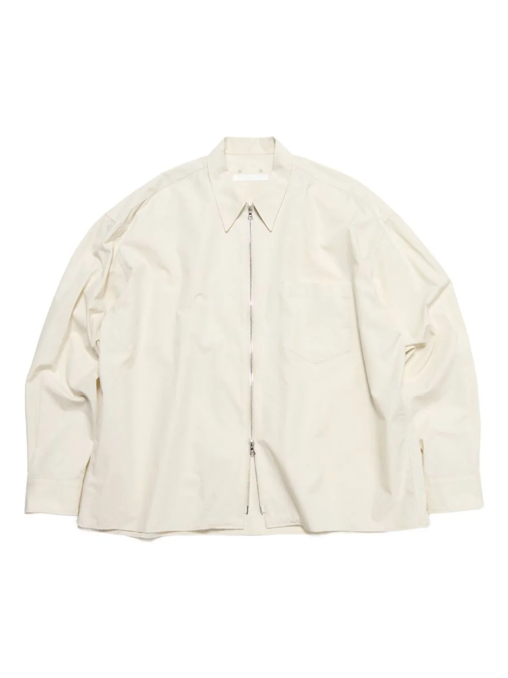 zip-front overshirt Highlights - Off-white - Zip fastening - Pointed collar - Chest pocket - Long sleeves - Buttoned cuffs Imported Composition Organic Cotton 60%, Cupro 40% Washing instructions Read Manufacturer Guidelines