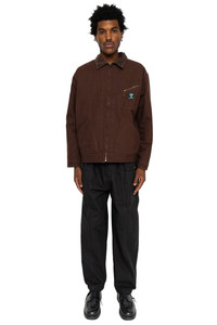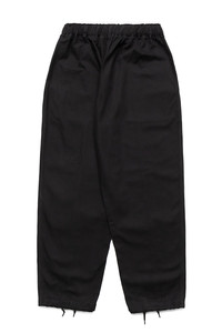 - Elastic waist with belt - 3 stitched center seam - Relaxed wide fit - Slide pocket with snap button - Overlapping pockets on both sides - A drawcord on the hem - Vintage texture due to wash processing - Color: Black - 11.5oz cotton canvas - 100% cotton - Made in Japan - Model is 6'2 wearing a size M