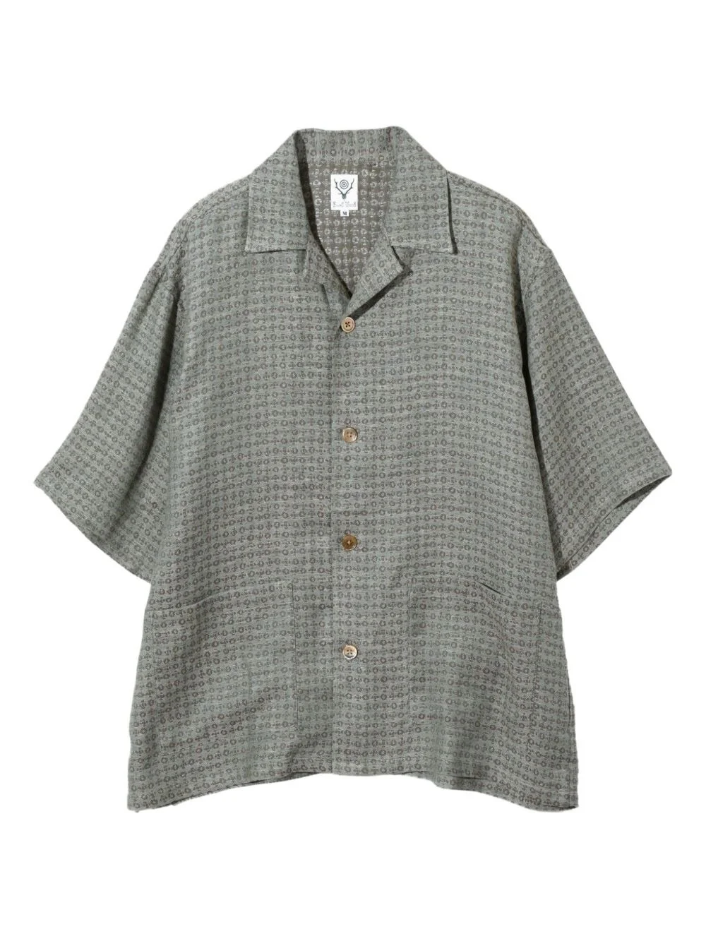 Cabana revere-collar patterned shirt Highlights - Blue grey - Short sleeves - Revere collar - Button fastening - All-over pattern Imported Composition Linen/Flax 68%, Cotton 32% Washing instructions Read Manufacturer Guidelines