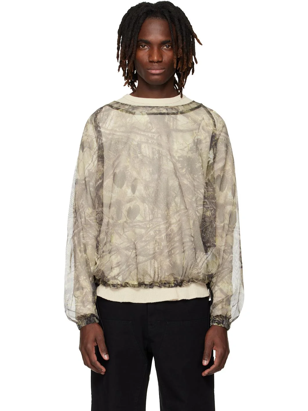Mesh T-shirt. · Camouflage pattern throughout · Lightweight, semi-sheer · Crewneck · Cord-lock drawstring at hem · Elasticized cuffs · Raglan sleeves Supplier color: Camo 100% polyester. Made in Japan 251294M213005