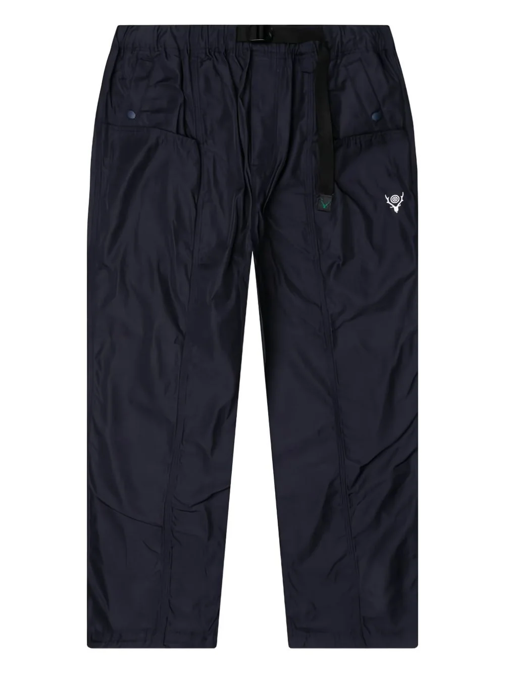 logo-print trousers Highlights - Blue - Elasticated waist - Buckle fastening - Patch pockets - Logo print Made in United States Composition Polyester 100% Washing instructions Read Manufacturer Guidelines