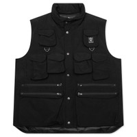 From premium Japanese brand South2West8, the Multi-Pocket Zipped Down Vest has utilitarian construction and is inspired by the art of Tenkara fly fishing. The vest features ten pockets for a cargo look. - Woven brand patch - High collar - Button closure - Style No: NS709-C