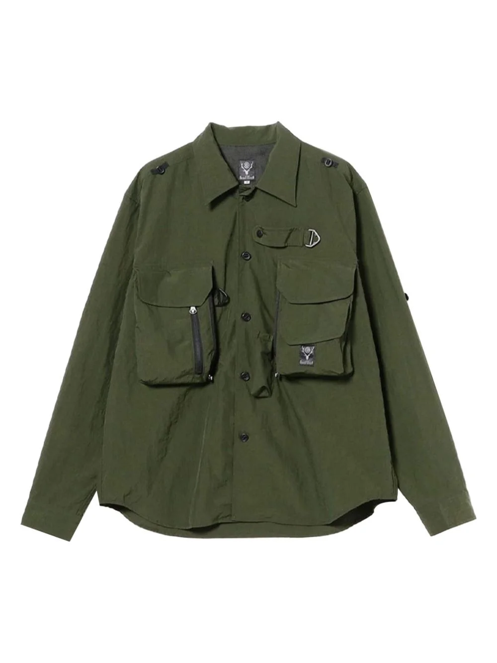logo-patch shirt Highlights - Khaki - Front button fastening - Two chest flap pockets - Spread collar - Long sleeves Imported Composition Fabric 100%