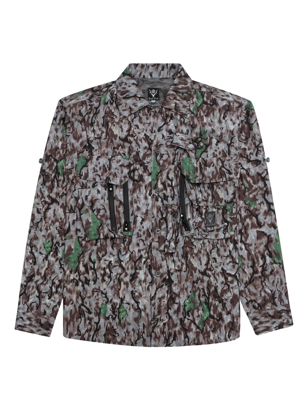 zip-front overshirt Highlights - Grey and multicolour - Zip front fastening - Multiple pockets - Buttoned cuffs - Long sleeves Imported Composition Polyester 100% Washing instructions Read Manufacturer Guidelines