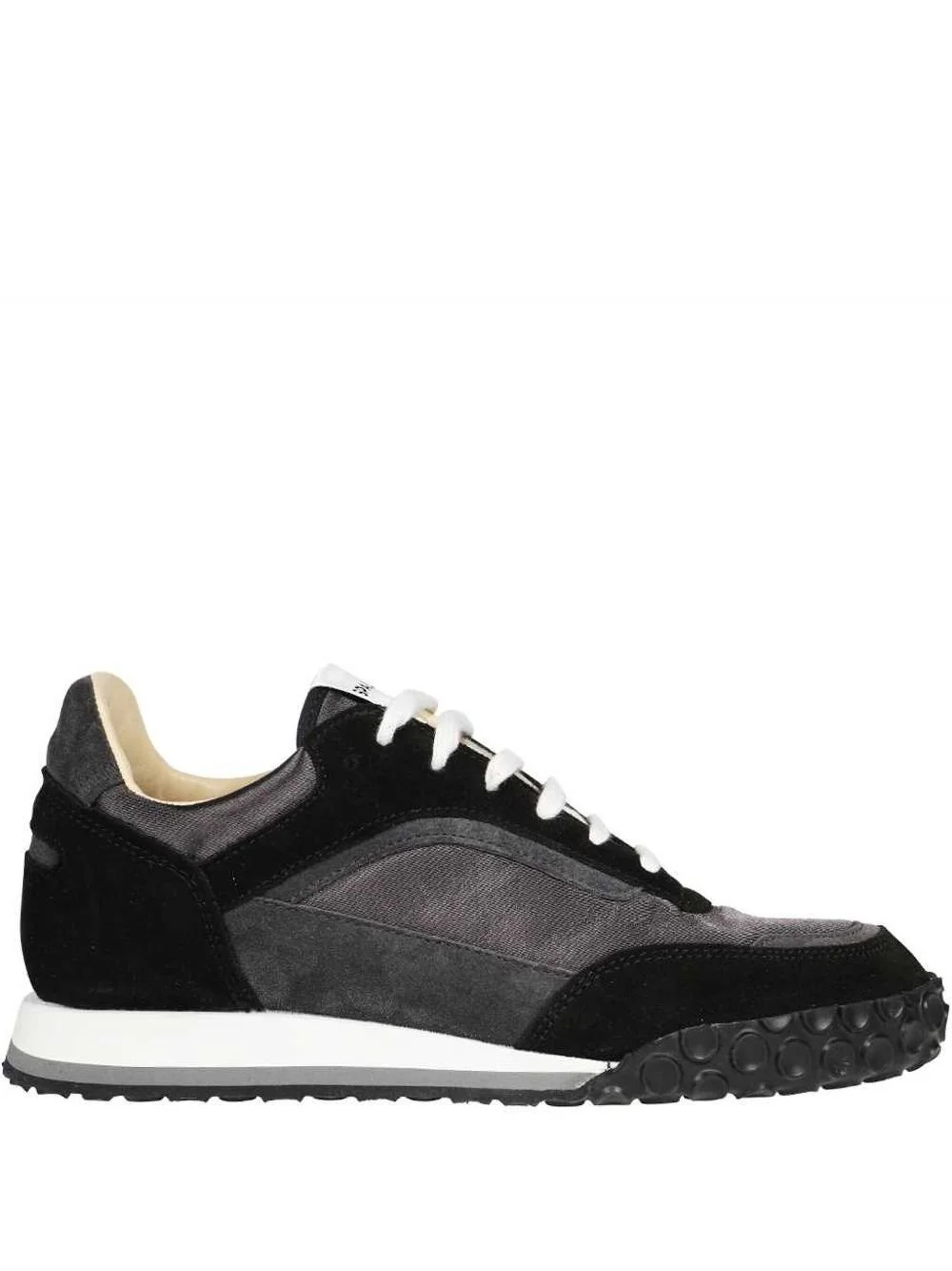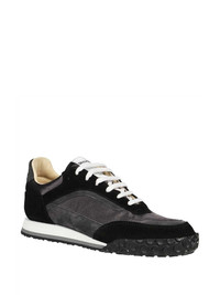 panelled sneakers Highlights - Black - Front lace-up fastening - Branded leather insole - Logo-print tongue - Rubber sole Imported Composition Outer: Rubber 100%, Calf Suede 75%, Other fibres 25% Lining: Calf Leather 100% Sole: Rubber 100%