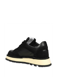 panelled sneakers Highlights - Black - Front lace-up fastening - Perforated detailing - Logo patch at the tongue - Contrasting rubber sole Imported Composition Outer: Fabric 100%, Calf Leather 100% Lining: Calf Leather 100%, Fabric 100% Sole: Rubber 100%