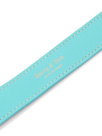 double-buckled leather dog collar Highlights - Cyan blue - Calf leather - Grained texture - Logo stamp to the rear - Contrast stitching - Double buckle fastening - Punched holes - Pointed tip - Adjustable fit Made in France Composition Calf Leather 100%, Metal 100%