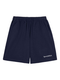 elastic-waistband logo shorts Highlights - Dark navy - Elastic waistband - Logo embroidery - Side pockets - Straight hem - Cotton Made In United States Composition Cotton 100% Washing instructions Read Manufacturer Guidelines