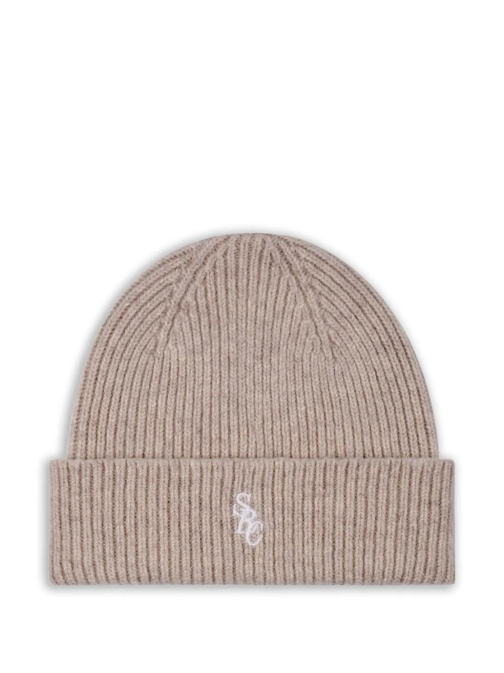 embroidered-logo ribbed beanie hat Highlights - Beige - Embroidered detail - Ribbed knit Imported Composition Cashmere 70%, Wool 30%