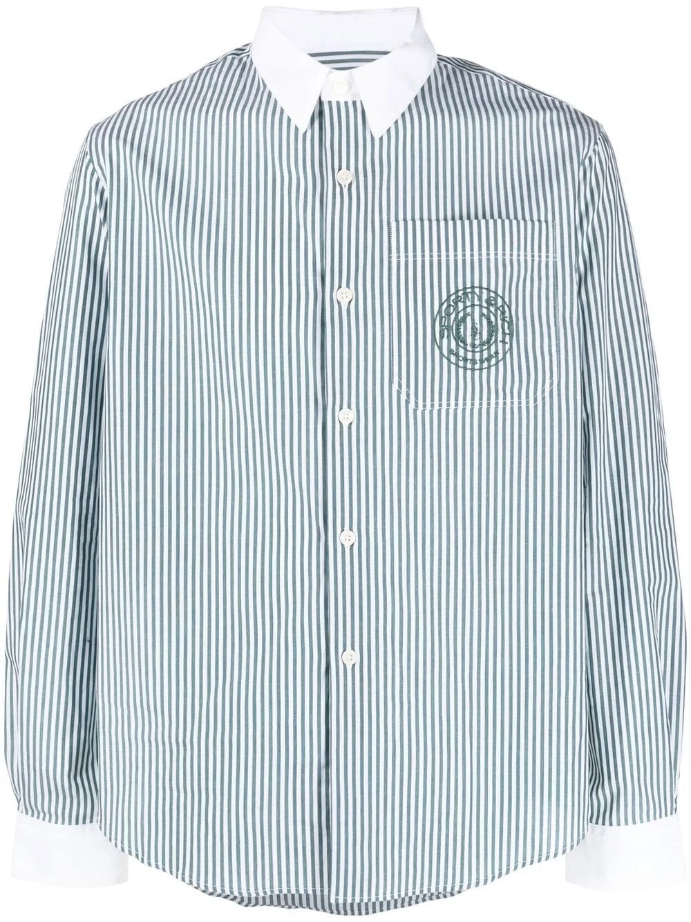 embroidered-logo striped shirt white/green cotton stripe print embroidered logo at the chest classic collar front button fastening long sleeves chest patch pocket Imported Composition Cotton 100% SIZE & FIT Model measurements Height 6 ft 1 in(1.85 m) Bust/Chest 35.82 in(91 cm) Hips 37.79 in(96 cm) Waist 29.13 in(74 cm) Measurement CHEST 44.88 in(114 cm) SLEEVE LENGTH 24.4 in(62 cm) LENGTH 27.95 in(71 cm) WAIST 44.88 in(114 cm) FittingInformation This piece fits true to size. We recommend you get your regular size Cut for a loose fit Made with a mid-weight non-stretch fabric