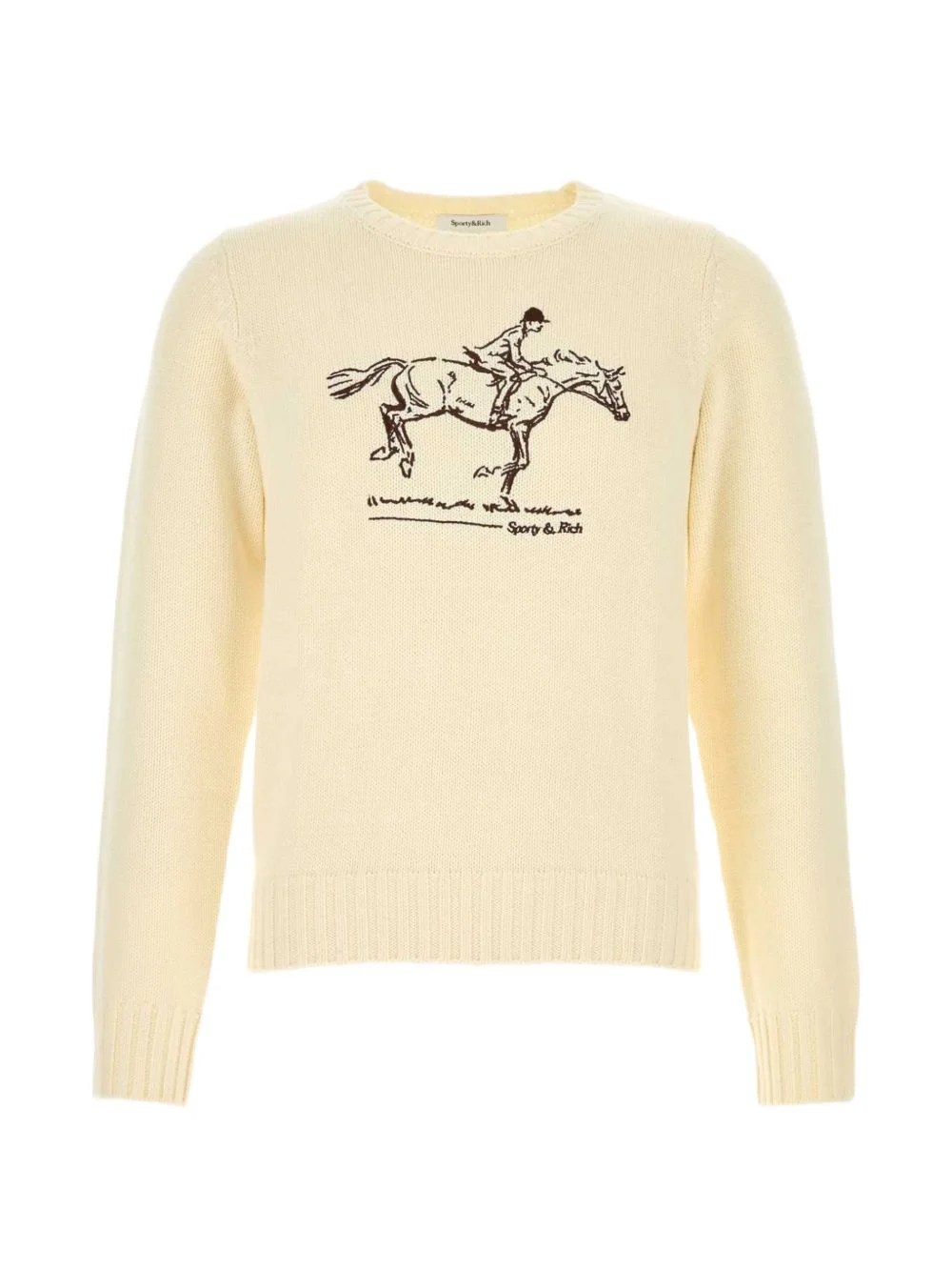 equestrian-print sweater Highlights - Ecru beige - Equestrian graphic - Round neck Imported Composition Cotton 100% Washing instructions Read Manufacturer Guidelines