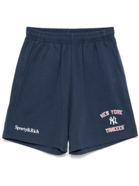 navy blue cotton elasticated waistband two side slit pockets logo print at the leg rear patch pocket straight hem When buying this unisex item, keep in mind that it is graded in standard men's sizing. - Color: BLUE - Made in: Portugal - Designer Style ID: SH039505300BL NA/WH Composition and care Cotton: 100.0%