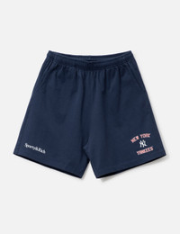 - Sporty & Rich - Home Run Gym Shorts - Sporty & Rich x NY Yankees collaborative collection - Elasticated waistband with hidden drawcord - Co-branding at leg - Two side pockets; one rear pocket - Color: Navy - Material: 100% Cotton - See more Shorts and Clothing SIZING Male - Model wears size L - Model measures: Height 183cm, Chest 35.5"/90cm, Waist 30"/76cm, Hip 33"/84cm - Model wears size M - Model measures: Height 177cm, Chest 32”/81cm, Waist 23.5”/59.7cm, Hip 33’’/83.8cm