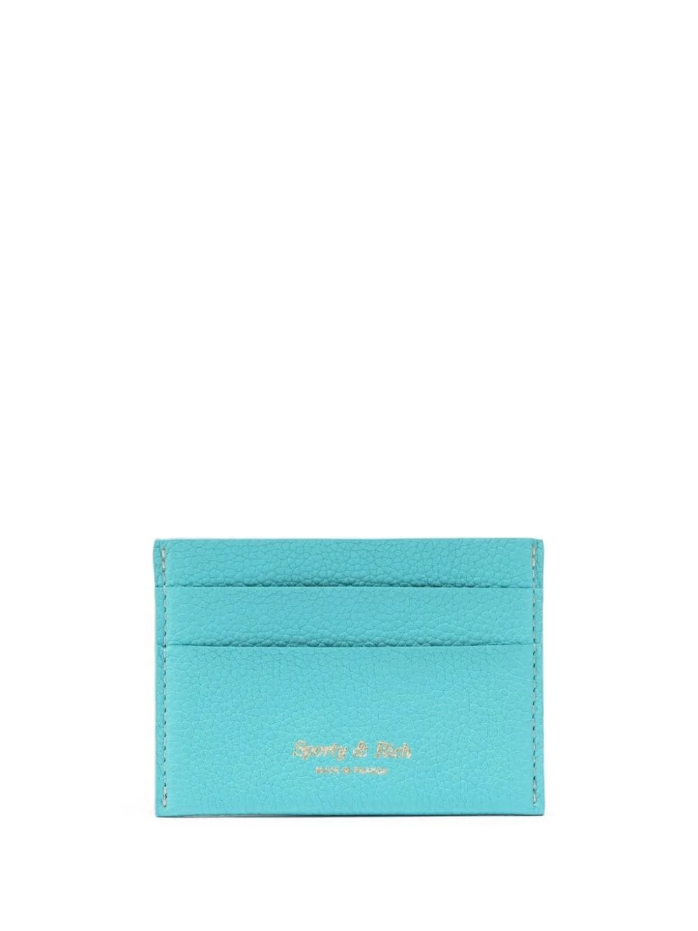 logo-embroidered leather cardholder Highlights - Cyan blue - Calf leather - Grained texture - Embroidered logo to the front - Rectangle shape - Card slots - Rear card slots Made in France Composition Outer: Calf Leather 100%