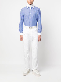 logo-embroidered stripe-print shirt Highlights - Indigo blue/white - Cotton - Vertical stripe print - Embroidered logo at the chest - Straight-point collar - Front button fastening - Chest patch pocket - Long sleeves - Buttoned-cuff sleeves - Curved hem - When buying this unisex item, keep in mind that it is graded in standard men's sizing. Imported Composition Cotton 100% SIZE & FIT Model measurements Height 6 ft 1 in(1.85 m) Bust/Chest 35.82 in(91 cm) Hips 37.79 in(96 cm) Waist 29.13 in(74 cm) Measurement CHEST 43.3 in(110 cm) SLEEVE LENGTH 24.01 in(61 cm) LENGTH 27.95 in(71 cm) WAIST 41.73 in(106 cm) Shoulder Width 18.5 in(47 cm)