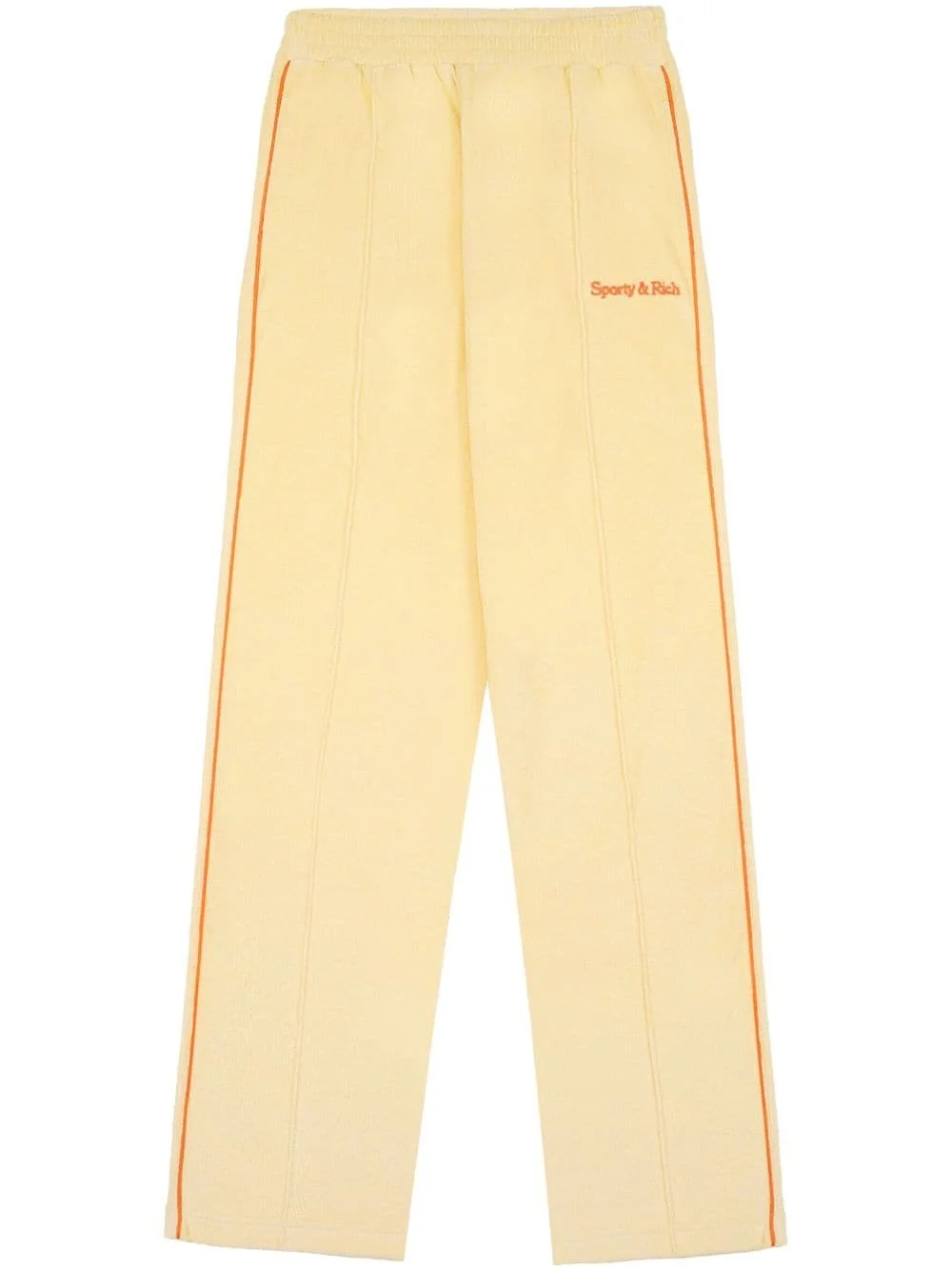 logo-embroidered terrycloth track pants Highlights - Yellow - Cotton - Terry-cloth effect - Pleat detailing - Embroidered logo to the front - Side stripe detailing - Elasticated waistband - Straight leg - Straight hem - When buying this unisex item, keep in mind that it is graded in standard men's sizing. Imported Composition Cotton 100%