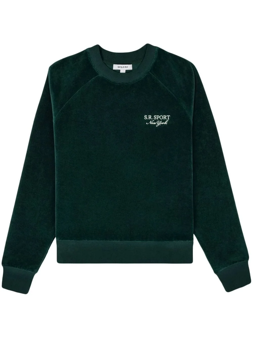 logo-embroidered velour sweatshirt Highlights - Forest green - Cotton/velour - Embroidered logo at the chest - Crew neck - Long raglan sleeves - Straight hem - When buying this unisex item, keep in mind that it is graded in standard men's sizing. Imported Composition Cotton 100%