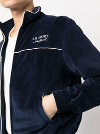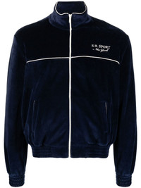 logo-embroidered zipped sweatshirt navy blue cotton velour embroidered logo at the chest piped-trim detailing high neck front zip fastening slip pockets to the sides long sleeves elasticated hem Imported Composition Cotton 100% SIZE & FIT Model measurements Height 6 ft 1 in(1.85 m) Bust/Chest 35.82 in(91 cm) Hips 37.79 in(96 cm) Waist 29.13 in(74 cm) Measurement CHEST 40.94 in(104 cm) SLEEVE LENGTH 23.22 in(59 cm) LENGTH 20.86 in(53 cm) Shoulder Width 16.14 in(41 cm) FittingInformation This piece fits true to size. We recommend you get your regular size Cut for a slim fit Made with a mid-weight fabric