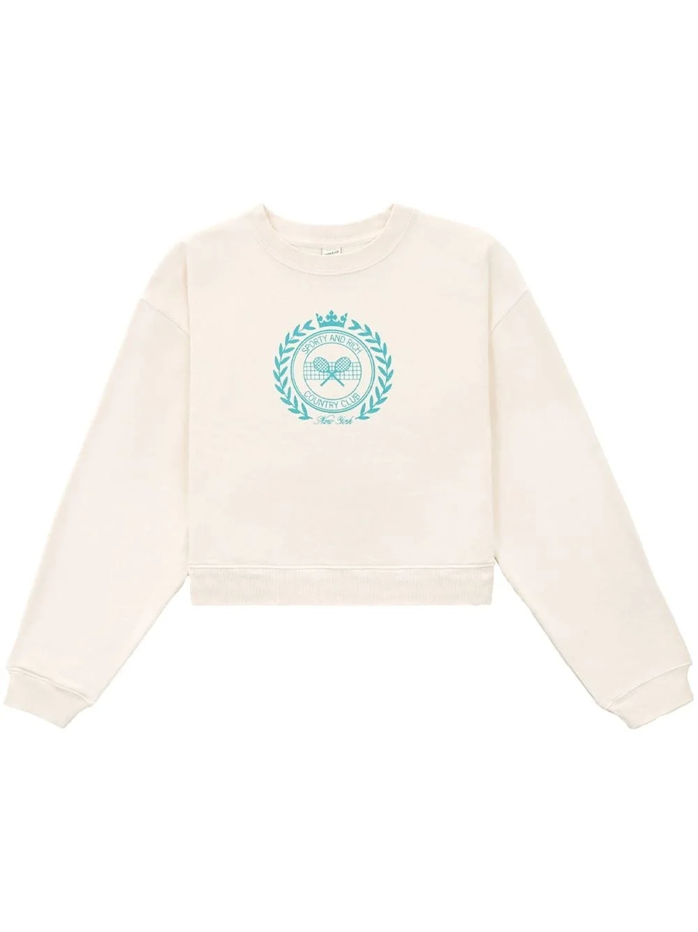 logo-print cotton cropped sweatshirt Highlights - Cream white - Cotton - Jersey texture - Pullover design - Logo print to the front - Long sleeves - Crew neck - Ribbed cuffs and hem - Cropped - When buying this unisex item, keep in mind that it is graded in standard men's sizing. Made in United States Composition Cotton 100%