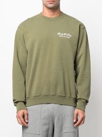 logo-print cotton sweatshirt olive green cotton logo print at the chest logo print to the rear crew neck long sleeves ribbed cuffs ribbed hem When buying this unisex item, keep in mind that it is graded in standard men's sizing. Made in United States Composition Cotton 100% SIZE & FIT Model measurements Height 5 ft 10 in(1.79 m) Bust/Chest 33.07 in(84 cm) Hips 35.03 in(89 cm) Waist 24.4 in(62 cm) FittingInformation This piece is unisex. Please take care when selecting your size Designed for a loose fit for men and an oversized fit for women Made with a mid-weight fabric Washing instructions Machine Wash