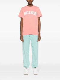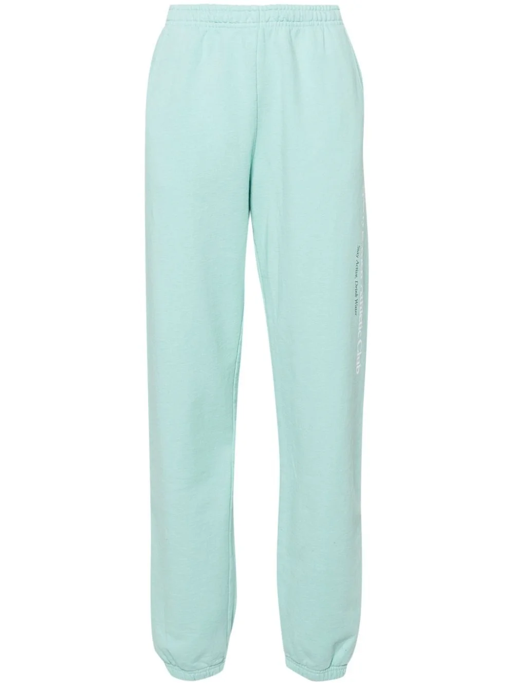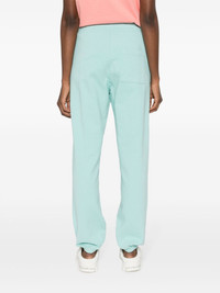 logo-print cotton track pants Highlights - Aqua blue/white - Cotton - Jersey texture - Logo print at the leg - Elasticated waistband with internal drawstring - Two side slash pockets - Rear patch pocket - Tapered leg - Elasticated ankles - French terry lining - This unisex item is graded in women's sizing. please check measurement details. Made in United States Composition Cotton 100% SIZE & FIT Model measurements Height 5 ft 10 in(1.78 m) Bust/Chest 31.49 in(80 cm) Hips 37 in(94 cm) Waist 23.62 in(60 cm) FittingInformation Designed for a relaxed tapered cut, these trousers allow for a close fit at the waist and offer a loose fit at the thighs, with a closer fit toward the ankles The elasticated waist and hem offer a secure, comfortable fit Made from a midweight non-stretch fabric, this piece offers minimal elasticity when worn This piece fits true to size – take your usual size Washing instructions Machine Wash