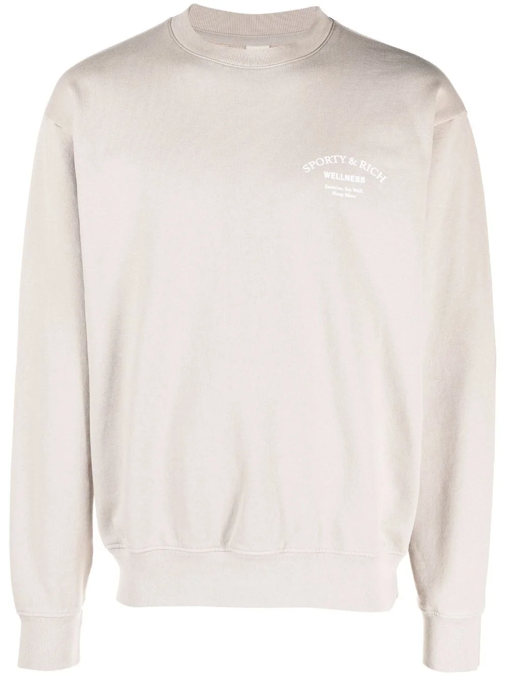 logo-print crew-neck sweatshirt Highlights - Light beige/white - Logo print at the chest - Logo print to the rear - Crew neck - Drop shoulder - Long sleeves - Straight hem - Ribbed trim Made in United States Composition Cotton 100% SIZE & FIT Model measurements Height 6 ft 2 in(1.87 m) Bust/Chest 38.18 in(97 cm) Hips 36.61 in(93 cm) Waist 29.13 in(74 cm) FittingInformation This unisex piece is designed for a loose fit whether you usually select women's or men's sizes Made with a midweight knit, this piece offers some stretch Washing instructions Machine Wash