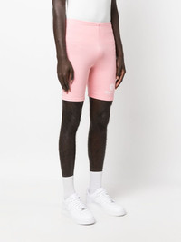 logo-print cycling shorts Highlights - Rose pink - Stretch-cotton - Logo print at the hem - Elasticated waistband - Thigh-length - When buying this unisex item, keep in mind that it is graded in standard men's sizing. Made in United States Composition Cotton 96%, Spandex/Elastane 4% SIZE & FIT Model measurements Height 5 ft 10 in(1.78 m) Bust/Chest 32.67 in(83 cm) Hips 35.43 in(90 cm) Waist 23.22 in(59 cm) FittingInformation This piece is unisex and is designed for a slim fit over the leg whether you usually select women's or men's sizes Made from a midweight stretch fabric, this piece offers elasticity and flexibility when worn