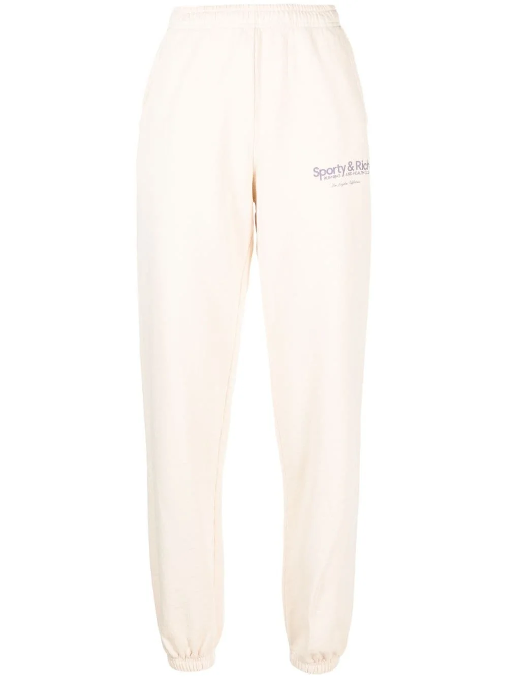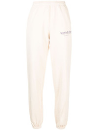 logo-print elasticated pants Highlights - Cream white - Cotton - Logo print to the front - Elasticated waistband - Two side slit pockets - Rear patch pocket - Elasticated ankles - When buying this unisex item, keep in mind that it is graded in standard men's sizing. Made in United States Composition Cotton 100% SIZE & FIT Model measurements Height 5 ft 10 in(1.78 m) Bust/Chest 33.46 in(85 cm) Hips 36.22 in(92 cm) Waist 23.22 in(59 cm) FittingInformation Designed for a relaxed tapered cut, these trousers allow for a close fit at the waist and offer a loose fit at the thighs, with a closer fit toward the ankles Adjust this piece’s waistband to your preference using the drawstring Made from a midweight non-stretch fabric, this piece offers minimal elasticity when worn This piece fits true to size – take your usual size