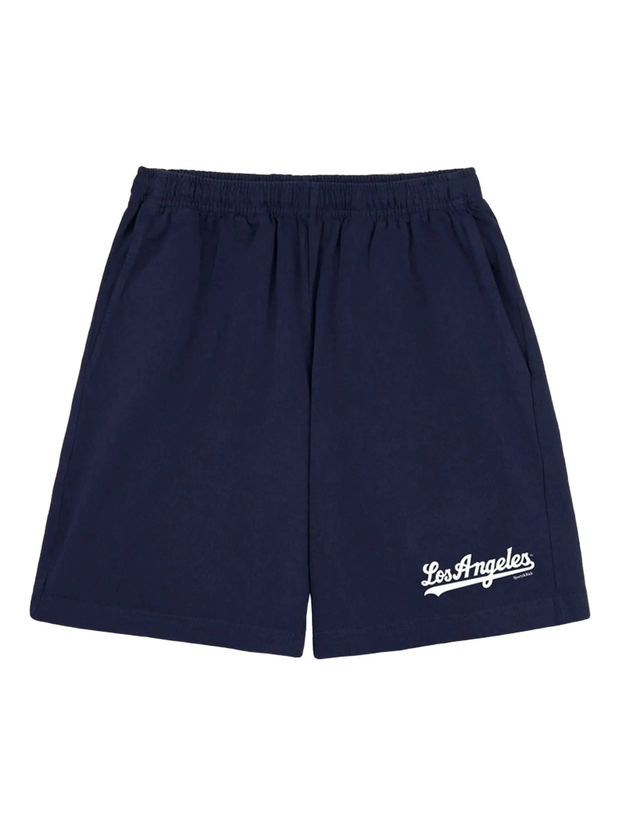 navy blue elasticated waistband two side slit pockets logo print to the front thigh-length - Color: BLUE - Made in: Bangladesh - Designer Style ID: SH039627667BL DKNA Composition and care Cotton: 100.0%