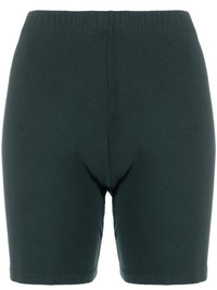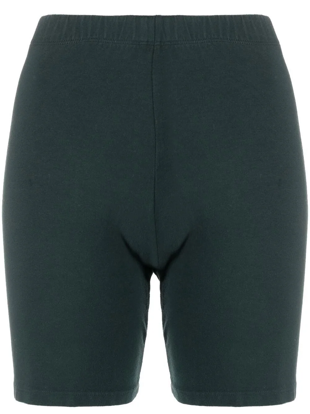 mid thigh shorts Highlights - Forest green - Cotton blend - Logo to the leg - Mid thigh length - Elasticated waistband - Straight hem - When buying this unisex item, keep in mind that it is graded in standard men's sizing. Made in United States Composition Cotton 91%, Spandex/Elastane 9% SIZE & FIT Model measurements Height 5 ft 11 in(1.8 m) Bust/Chest 31.49 in(80 cm) Hips 36.22 in(92 cm) Waist 25.59 in(65 cm) FittingInformation This piece fits true to size. We recommend you get your regular size Cut for a close fit Made with a mid-weight stretch fabric Washing instructions Machine Wash
